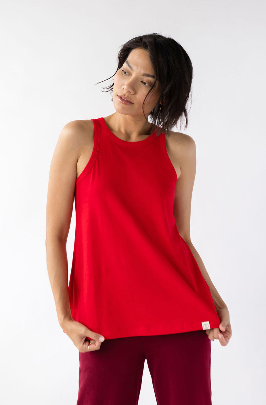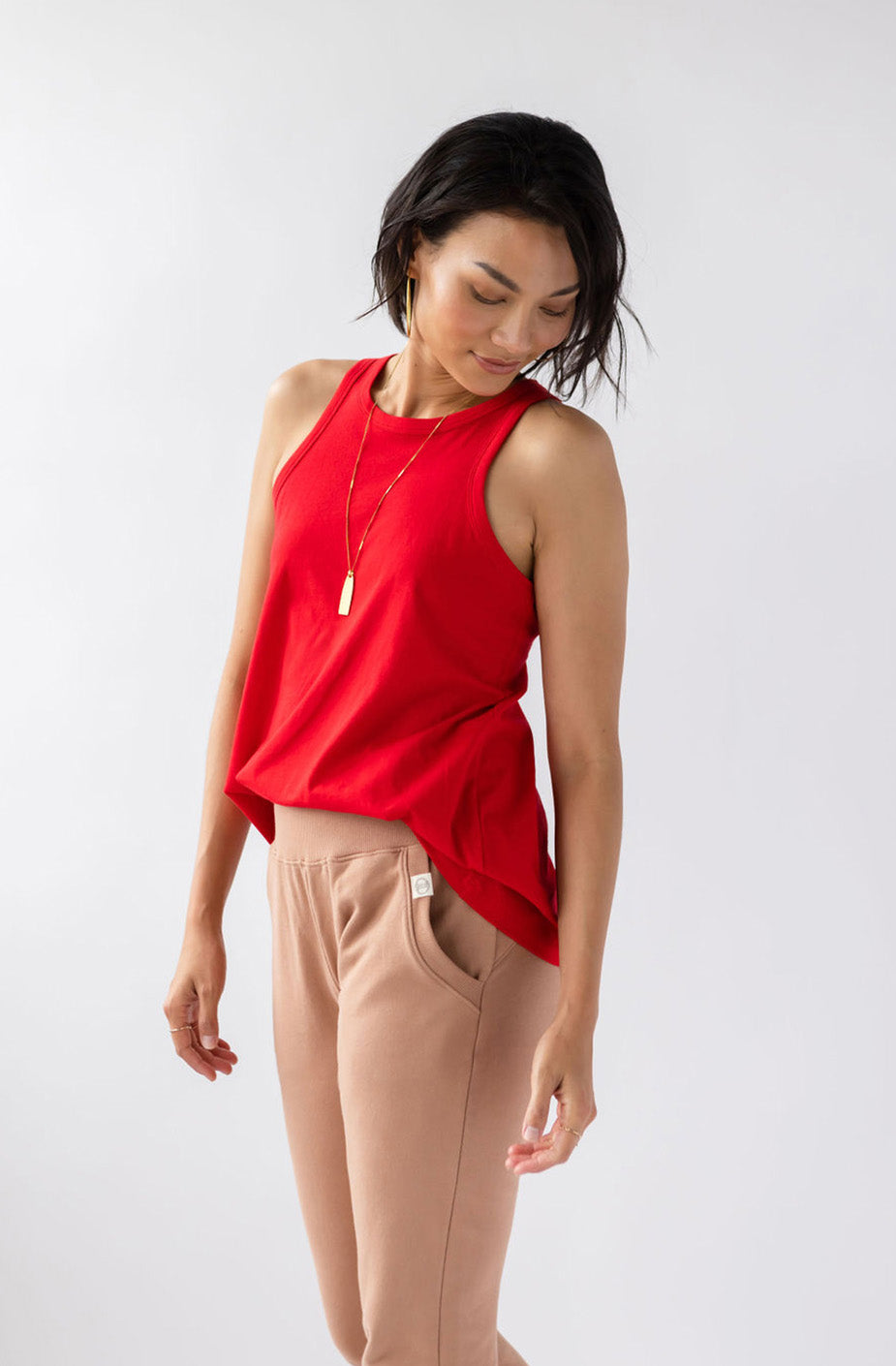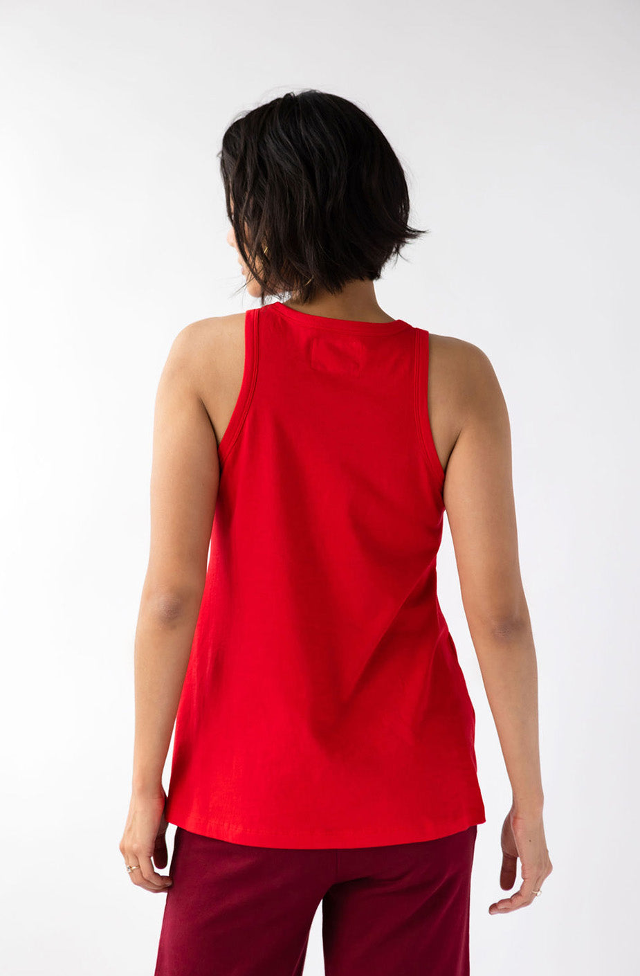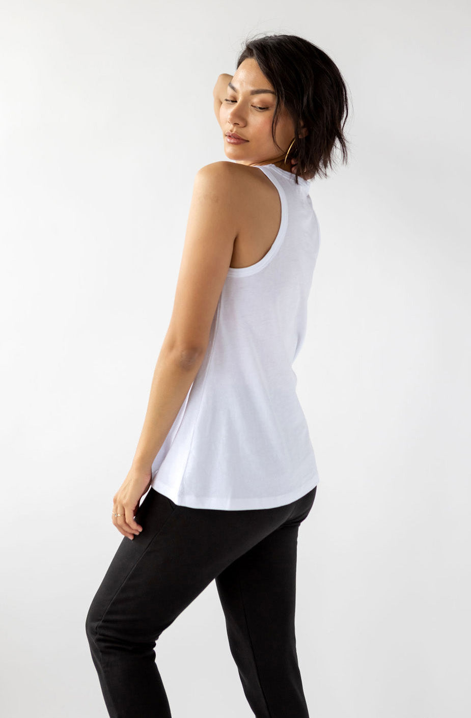 Show your sexy strength with this essential tank. Comfort and style have never looked so good. The KO is cut to show what you like to show and hide what you might want to keep for yourself. We like to pair the KO with our Drew Wide Leg Pant.