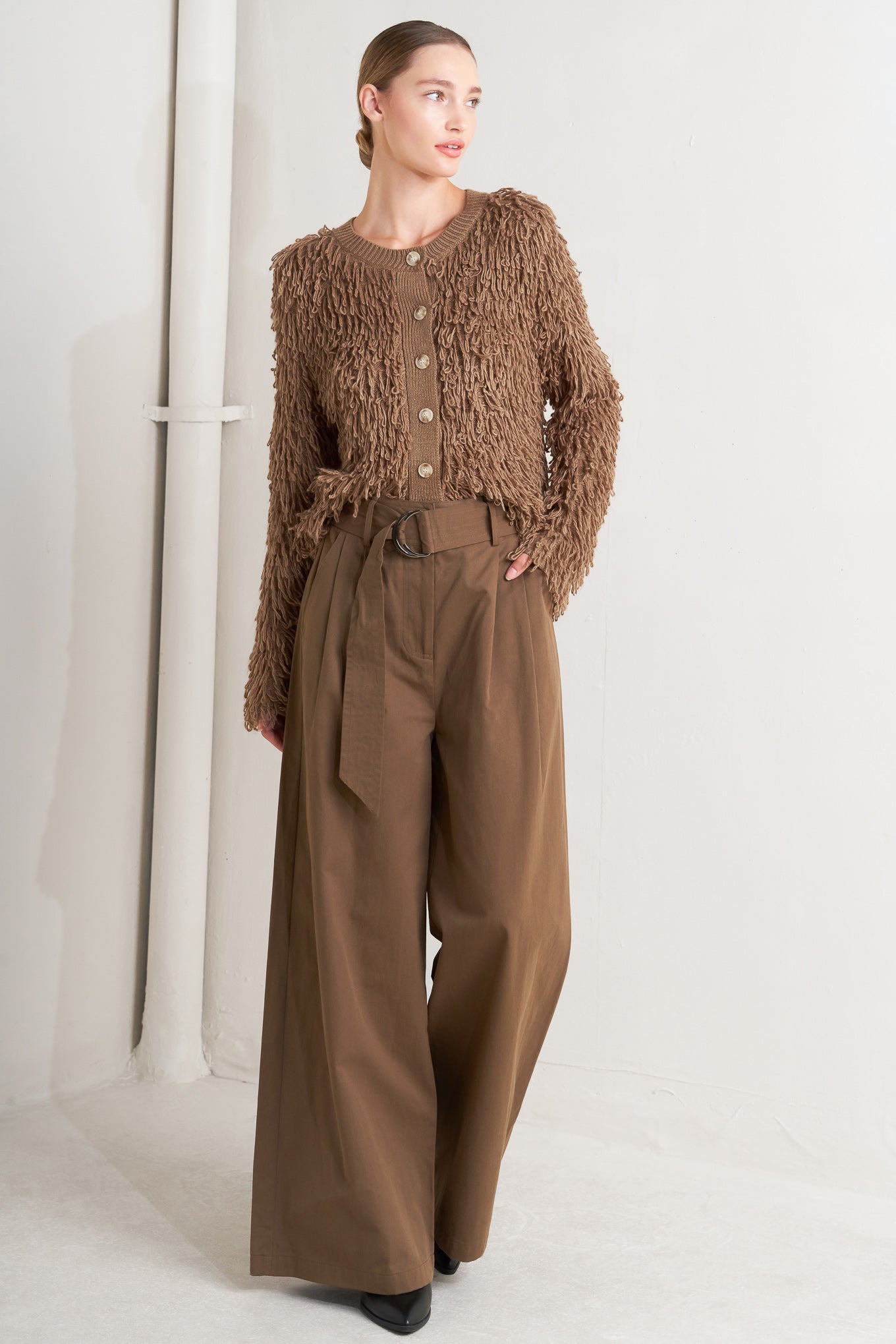 A textured sweater knit cardigan