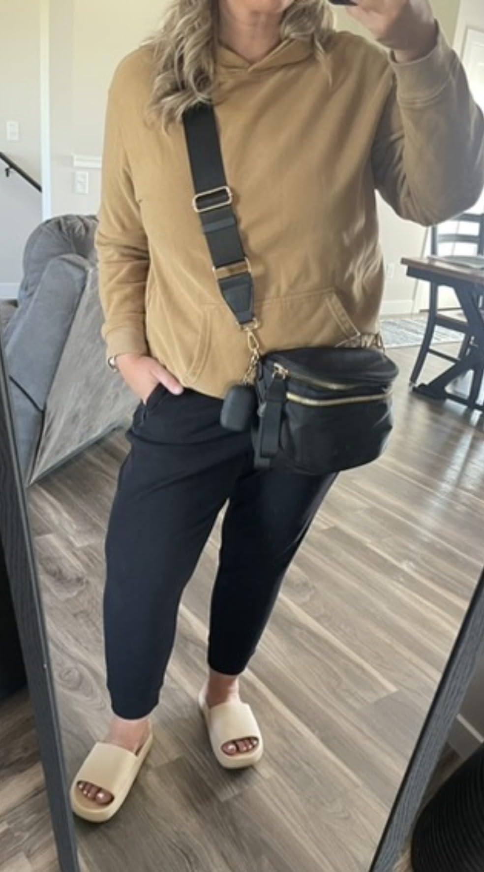 This bag was perfect for my trip to France. It looks more expensive than it is and it has tons of room, like could fit my big wallet, two water bottles and sunscreen no problem. Love the big zip pulls. Can be worn as a shoulder bag, cross body, or fanny pack. The tan color was chic and goes with everything. Don’t hesitate to buy this bag.